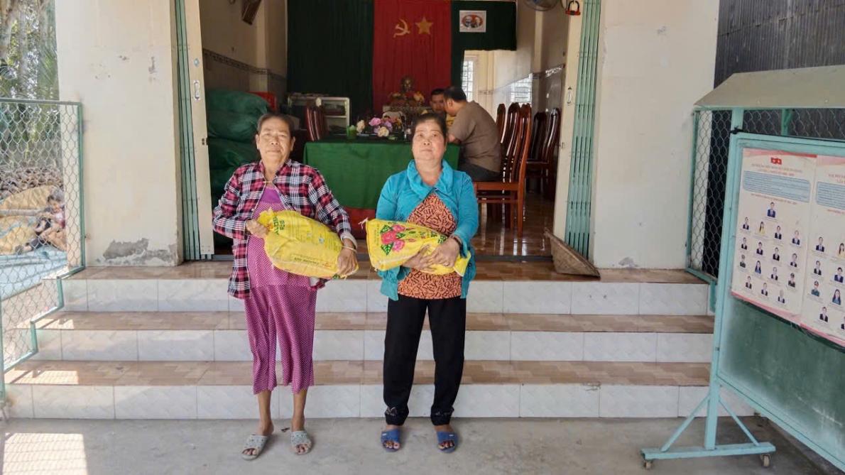 Ban nhân dân ấp Phú Nghĩa tặng gạo cho hộ có hoàn cảnh khó khăn