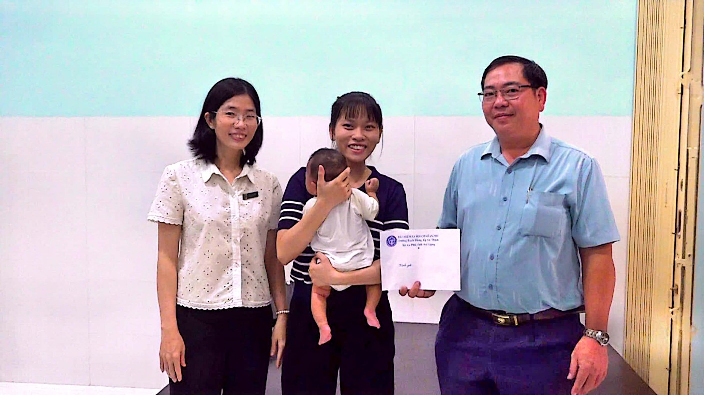 Người nhận chế độ chính sách là chị Dương Thị Kiều Nhi, ngụ ấp An Thạnh, xã An Phú, tham gia BHXH tự nguyện được hơn 01 năm 09 tháng. Chị Nhi đủ điều kiện hưởng chế độ thai sản theo Luật Bảo hiểm xã hội năm 2024, có hiệu lực từ ngày 1/7/2025, chế độ trợ cấp là 2 triệu đồng cho mỗi lần sinh.