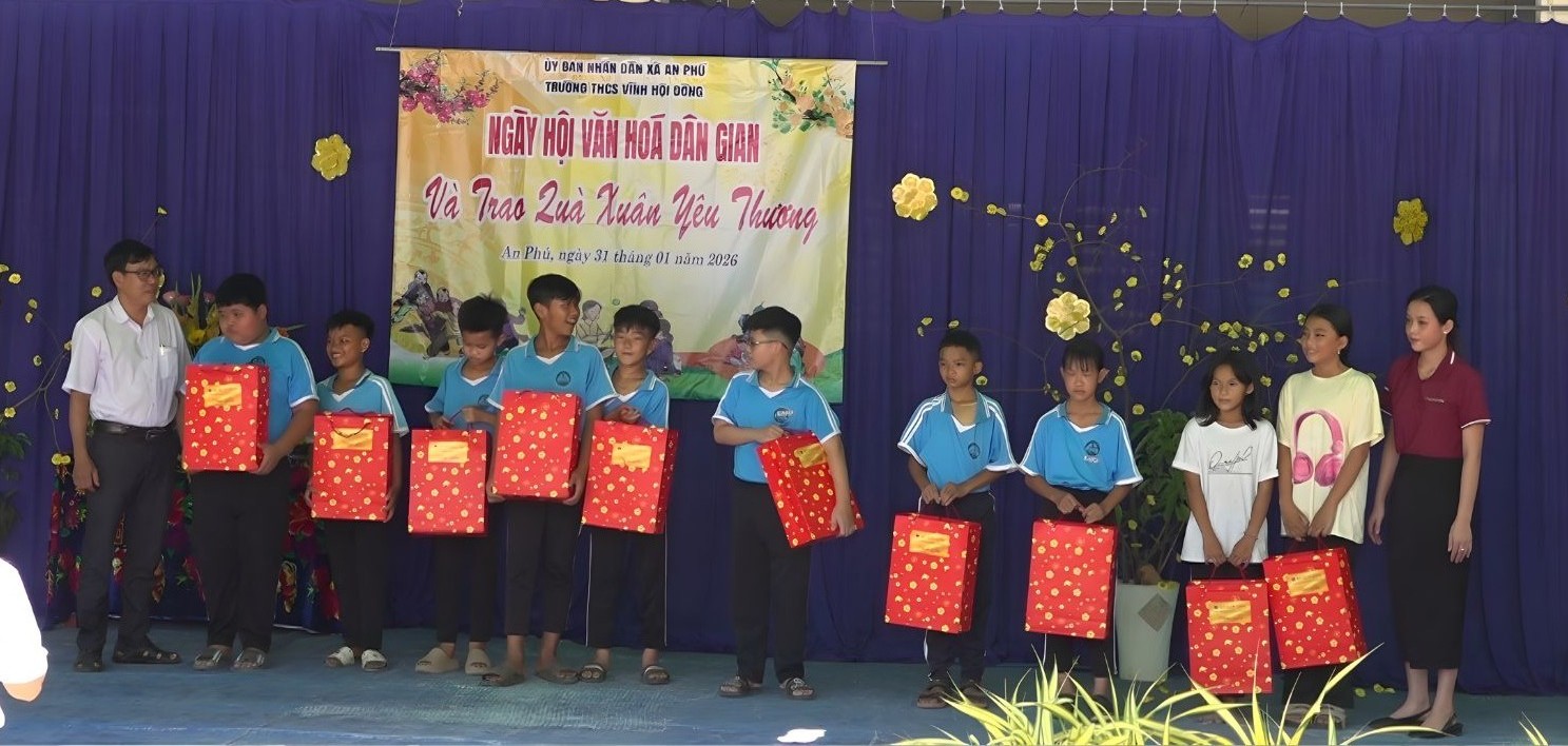 Dịp này, nhà trường cũng đã trao tặng 107 phần quà tết cho các em học sinh nghèo, mỗi phần trị giá 300 ngàn đồng, tổng đợt trao tặng 32,1 triệu đồng, giúp các em có thêm niềm vui và sự quan tâm trong dịp Tết cổ truyền.