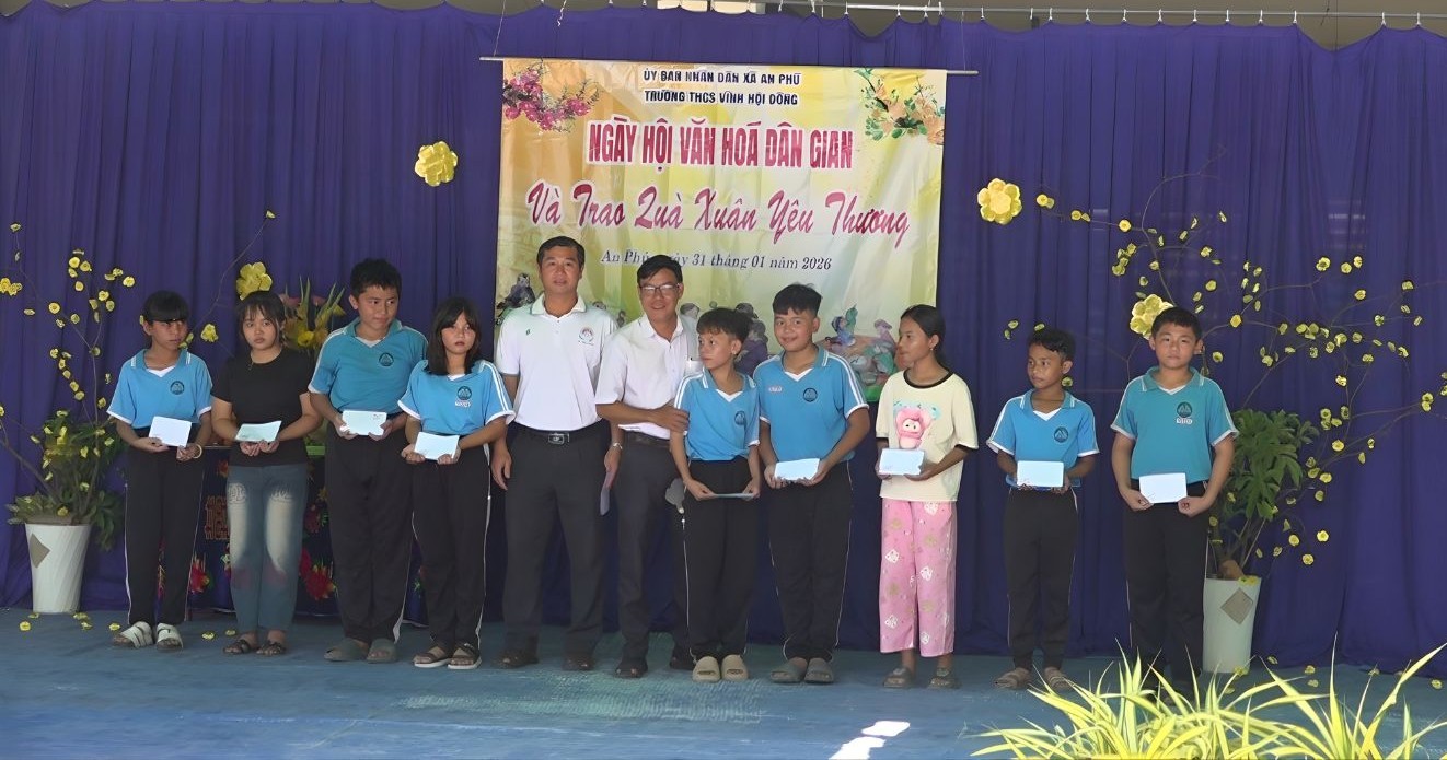 Chiều 31/1, Trường THCS Vĩnh Hội Đông tổ chức Ngày hội Văn hóa Dân gian mừng Xuân Bính Ngọ năm 2026; Tỉnh ủy viên, Bí thư Đảng ủy, Chủ tịch HĐND xã An Phú Quách Tố Giang đến dự.