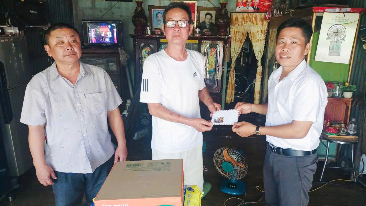 Chi bộ ấp Phú Nghĩa chúc tết, tặng quà gia đình ông Huỳnh Văn Định