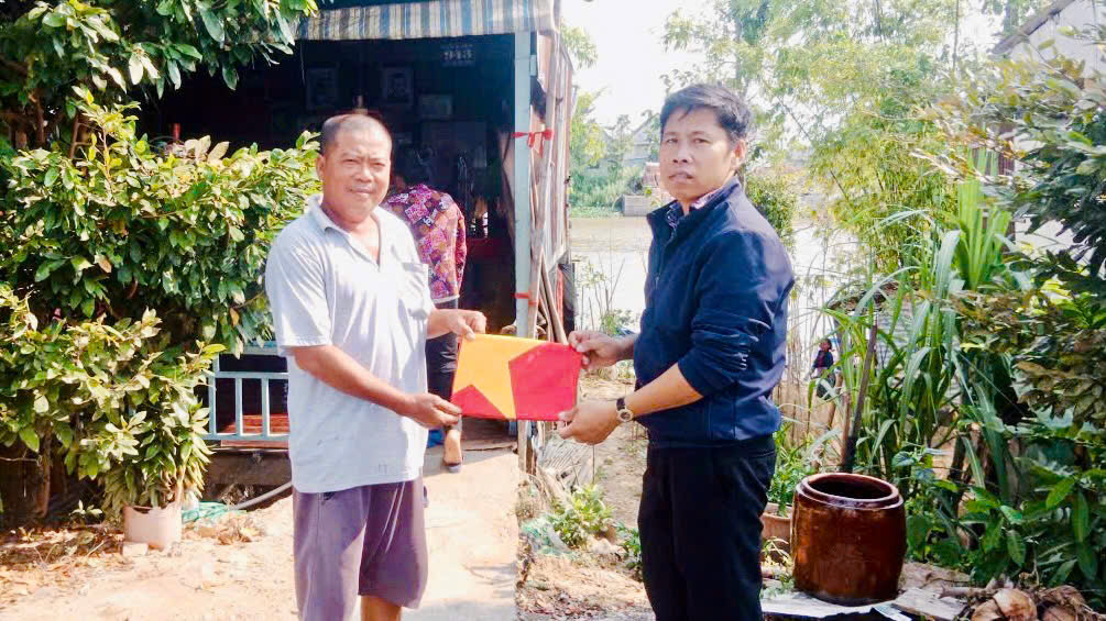 Chi bộ ấp Phú Nghĩa, xã An Phú tặng cờ Tổ quốc cho hộ dân