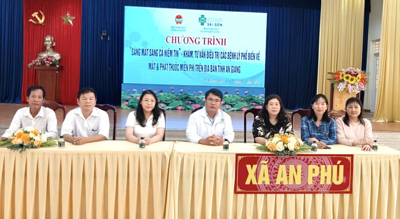 Sáng 12/3, tại Hội trường Đảng ủy xã An Phú, Hội Nông dân tỉnh An Giang phối hợp với Bệnh viện Mắt Sài Gòn – Kiên Giang tổ chức chương trình “Sáng mắt sáng cả niềm tin” nhằm khám, tư vấn và điều trị các bệnh lý phổ biến về mắt cho người dân trên địa bàn xã; đến dự có bà Nguyễn Trung Hạnh, Ủy viên Ban Thường vụ Đảng ủy, Phó Chủ tịch UBND xã An Phú.