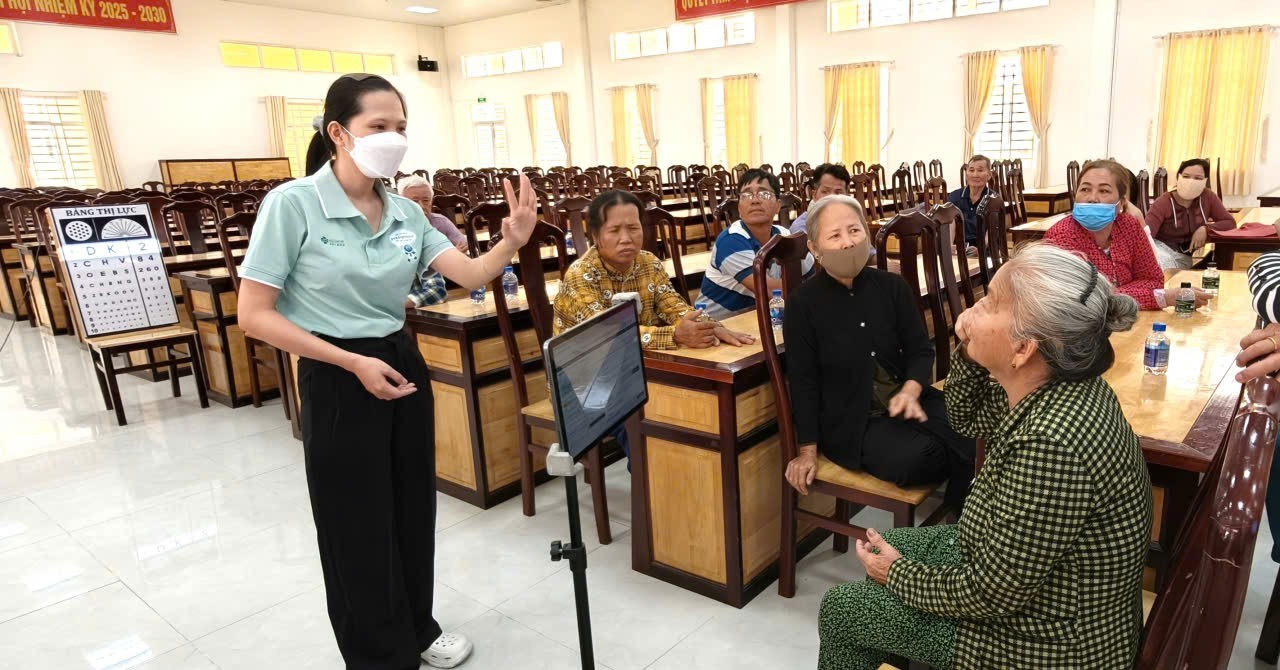 Y, bác sĩ Bệnh viện Mắt Sài Gòn – Kiên Giang kiểm tra thị lực cho người dân