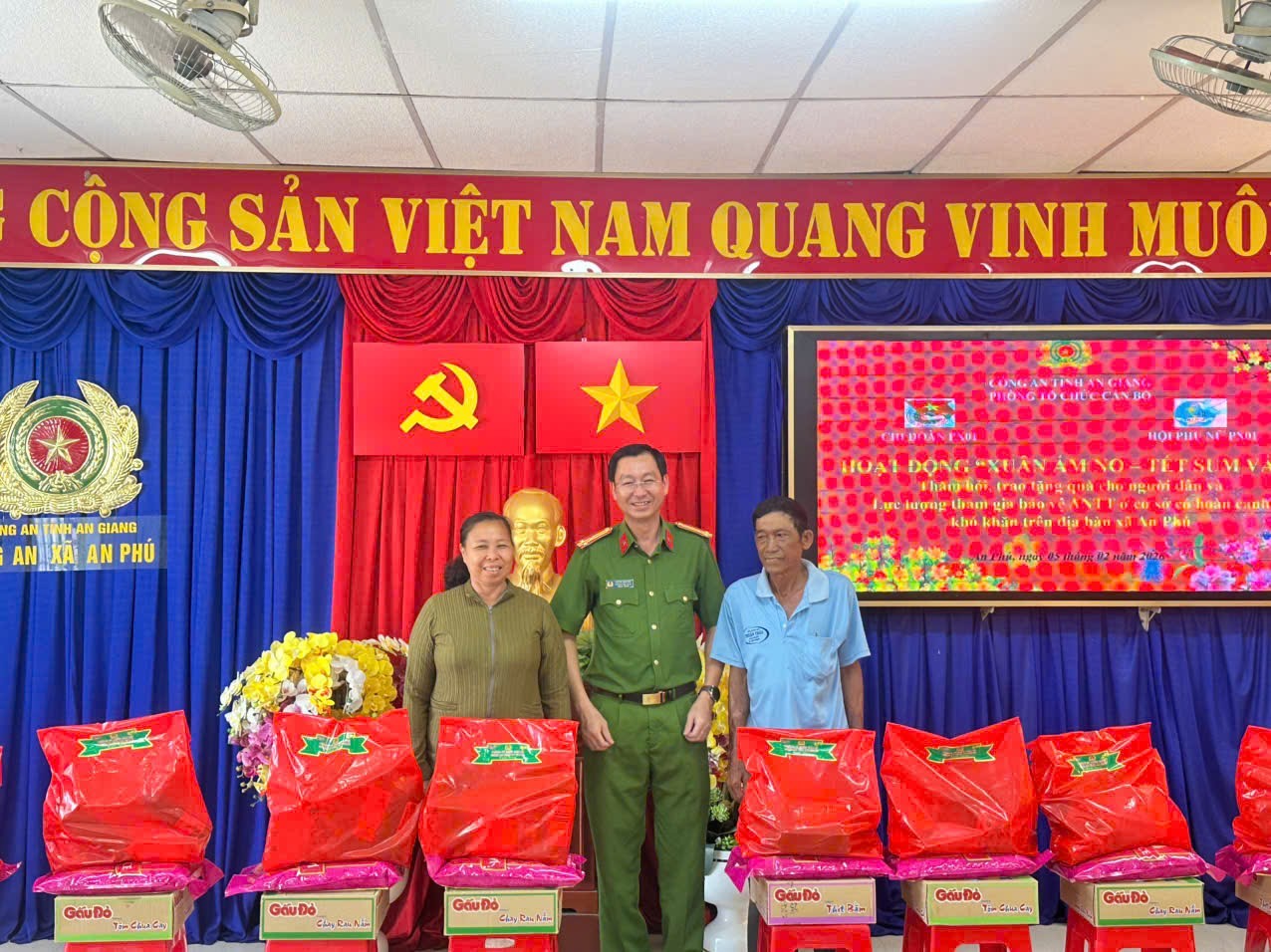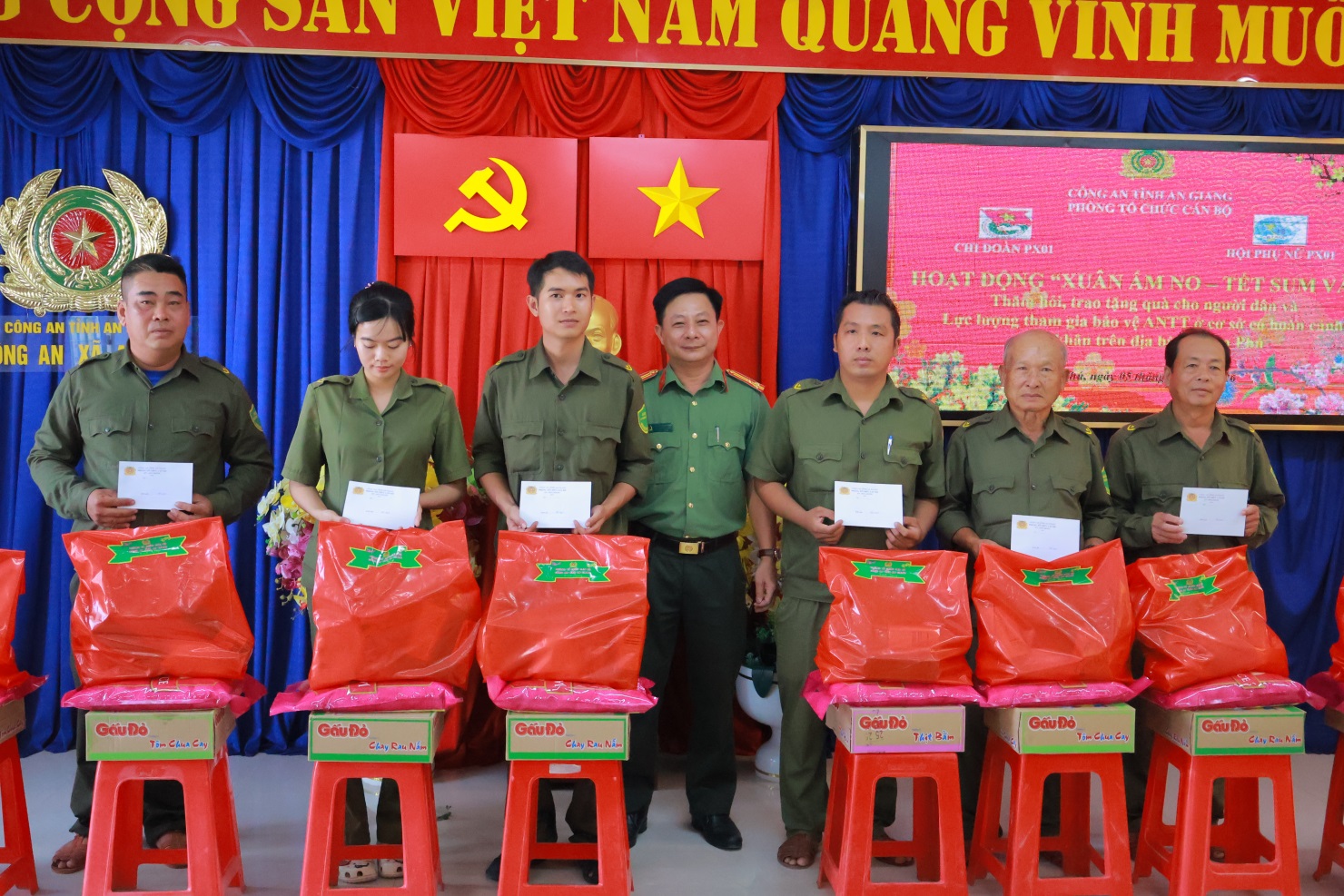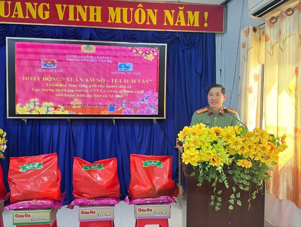 Tại buổi lễ, Phòng PX01 công an tỉnh An Giang đã trao 50 phần quà tết cho hộ nghèo, cận nghèo, gia đình khó khăn và lực lượng an ninh cơ sở. Mỗi phần quà trị giá 400.000 đồng, tổng đợt trao quà trị giá trên 20 triệu đồng.