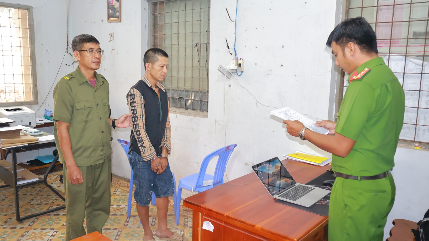 Công an xã An Phú đọc Quyết định tạm giam đối với Nguyễn Văn Đồi