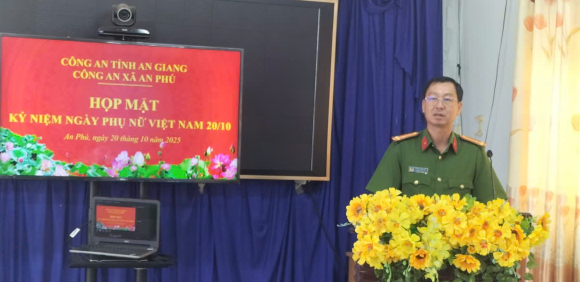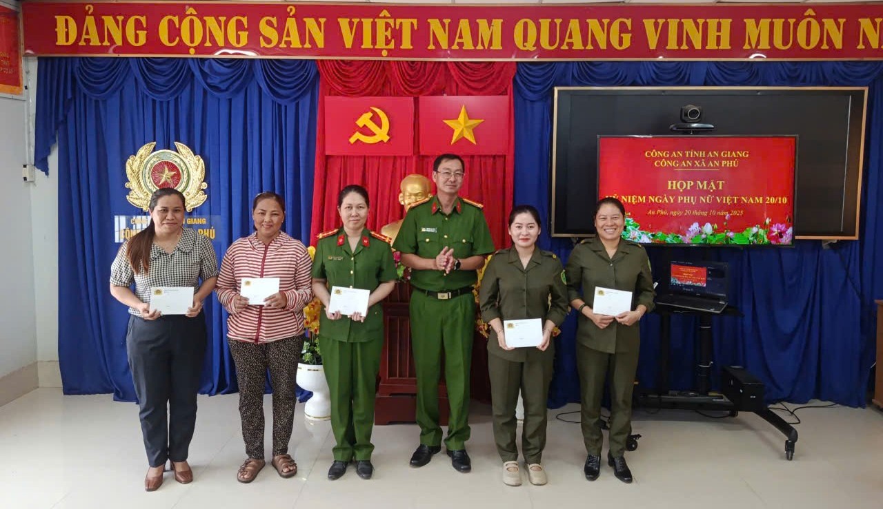 Tại buổi họp mặt, Thượng tá Huỳnh Văn Phú, Trưởng công an xã đã trao quà và gửi lời chúc tốt đẹp đến toàn thể cán bộ, chiến sĩ nữ. Trưởng công an xã nhấn mạnh: Các nữ cán bộ, chiến sĩ Công an xã An Phú đã luôn thể hiện tinh thần “Giỏi việc nước, đảm việc nhà”, tích cực tham gia và hoàn thành xuất sắc mọi nhiệm vụ được giao. Chính sự bản lĩnh, sự tận tâm và những hy sinh thầm lặng của các đồng chí đã góp phần không nhỏ vào thành tích chung của đơn vị.