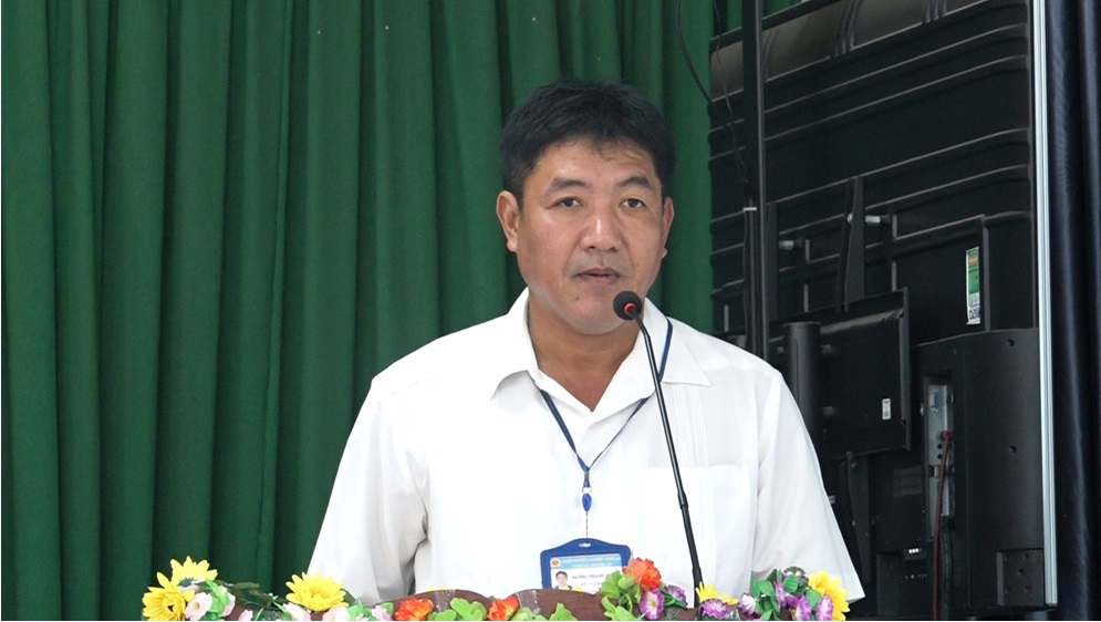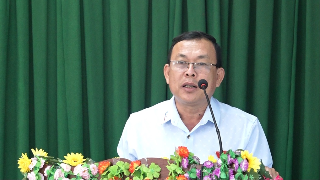 Ông Lê Minh Thuận, Trưởng Ban Tuyên giáo Huyện ủy An Phú, Giám đốc Trung tâm chính trị huyện, đại biểu HĐND tỉnh phát biểu