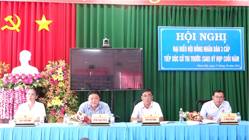 Phát biểu trả lời kiến nghị của cử tri, ông Nguyễn Văn Trí, Phó Chủ tịch UBND xã Nhơn Hội cho biết: Vấn đề phòng học xuống cấp đang được Ban Giám hiệu trường khắc phục.Về nhà ở cho hộ nghèo, 9 tháng đầu năm, địa phương đã vận động cất mới được 12 căn nhà và hoàn thành khu nhà đại đoàn kết, bố trí cho 20 hộ dân vào ở. Về nhu cầu nhà ở cho người dân là rất lớn, địa phương sẽ từng bước vận động mọi nguồn lực để tiếp tục chăm lo. Đối với chế độ chính sách cho người có công được địa phương quan tâm thực hiện đúng đủ, kịp thời. Riêng vấn đề giao thông và tệ nạn xã hội, đề nghị Công an tiếp thu có giải pháp đấu tranh triệt xóa.