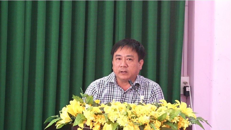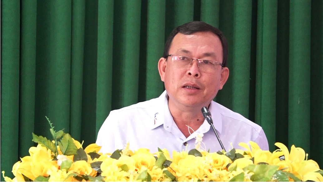 Ông Lê Minh Thuận, Trưởng Ban Tuyên giáo Huyện ủy An Phú, Giám đốc Trung Tâm chính trị huyện phát biểu