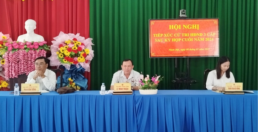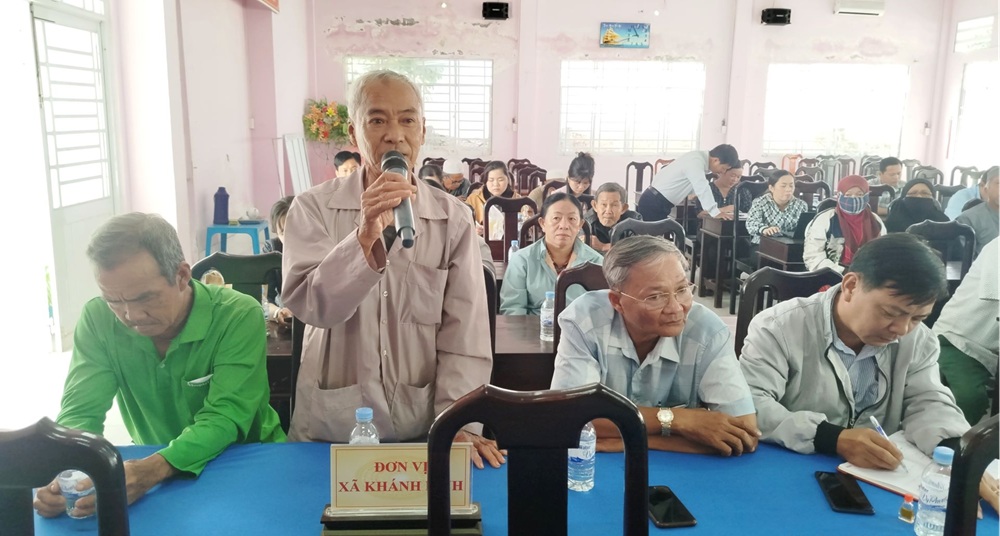 Tại buổi tiếp xúc, sau khi nghe báo cáo tóm tắt kết quả kỳ họp HĐND tỉnh, huyện, kỳ cuối năm 2024 và thông tin các chính sách mới về mức hỗ trợ thăm tặng quà nhân dịp lễ tết; việc hỗ trợ Nhân dân trong giải quyết thủ tục hành chính về tài nguyên môi trường,…cử tri xã Khánh Bính và Nhơn Hội đã tham gia 3 ý kiến xoay quanh nội dung như: Tiếp tục quan tâm nhiều hơn công tác xoá đói giảm nghèo; việc bình xét hộ nghèo, các đối tượng được hỗ trợ mô hình sinh kế chăn nuôi bò cần đảm bảo đúng quy định, đúng đối tượng; một số đèn chiếu sáng bị hư hỏng; lộ giao thông nông thôn ấp Sa Tô xã Khánh Bình ( khu vực Búng Bình Thiên) xuống cấp cần tu sửa; đề nghị lắp đặt thêm đèn tín hiệu, biển cảnh báo hạn chế tốc độ tại các đoạn đường nguy hiểm, ngã ba, khu vực trường học; kiến nghị có biện pháp xử lý xe quá tải trọng,...