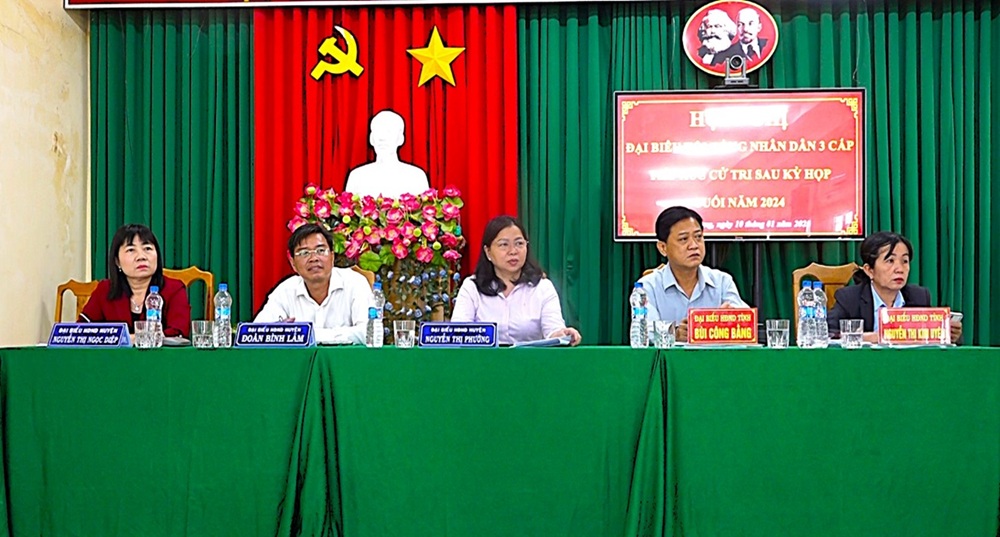 Tại buổi tiếp xúc, cử tri đã được đại biểu Hội đồng nhân dân tỉnh, huyện lần lượt báo cáo tóm tắt kết quả kỳ họp cuối năm 2024 và thông báo trả lời kiến nghị của cử tri trước kỳ họp. Qua đó, cử tri xã Vĩnh Trường ý kiến về tình hình thu gom rác thải chậm, gây ô nhiễm môi trường; đề nghị bố trí thùng rác thải trên các tuyến đường; đầu tư xây dựng cụm dân cư cho đồng bào dân tộc Chăm ấp Lama; đề nghị chi phí điều trị bệnh khi nhập viện đối với Người có công cách mạng. Cử tri thị trấn An Phú ý kiến về việc chậm trễ trong thực hiện thi hành án.