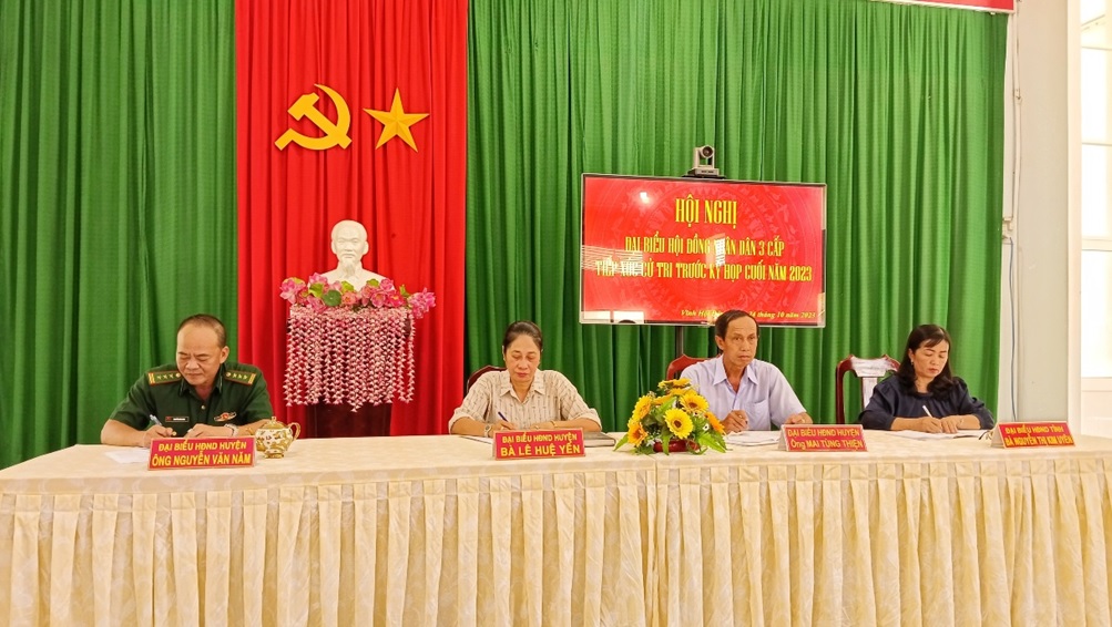 Sau khi nghe các ý kiến kiến nghị của cử tri, các đại biểu Hội đồng nhân dân 3 cấp đã giải trình thỏa đáng theo thẩm quyền, lĩnh vực phụ trách những vấn đề của cử tri như: địa phương sẽ tăng cường kêu gọi sự đầu tư, hỗ trợ từ huyện để đầu tư xây dựng cầu bắt qua sông, cũng như cải tạo cống thoát nước khu dân cư trung tâm chợ. Các đoạn lộ giao thông nông thôn xuống cấp tại ấp Vĩnh An, huyện đã khảo sát và đang tiến hành nâng cấp, mở rộng, đáp ứng nhu cầu đi lại của người dân, cũng như phục vụ nhu cầu phát triển kinh tế - xã hội địa phương. Phòng Lao động - Thương binh - Xã hội huyện sẽ tiếp tục hỗ trợ các chế độ chính sách cho con em gia đình chính sách...