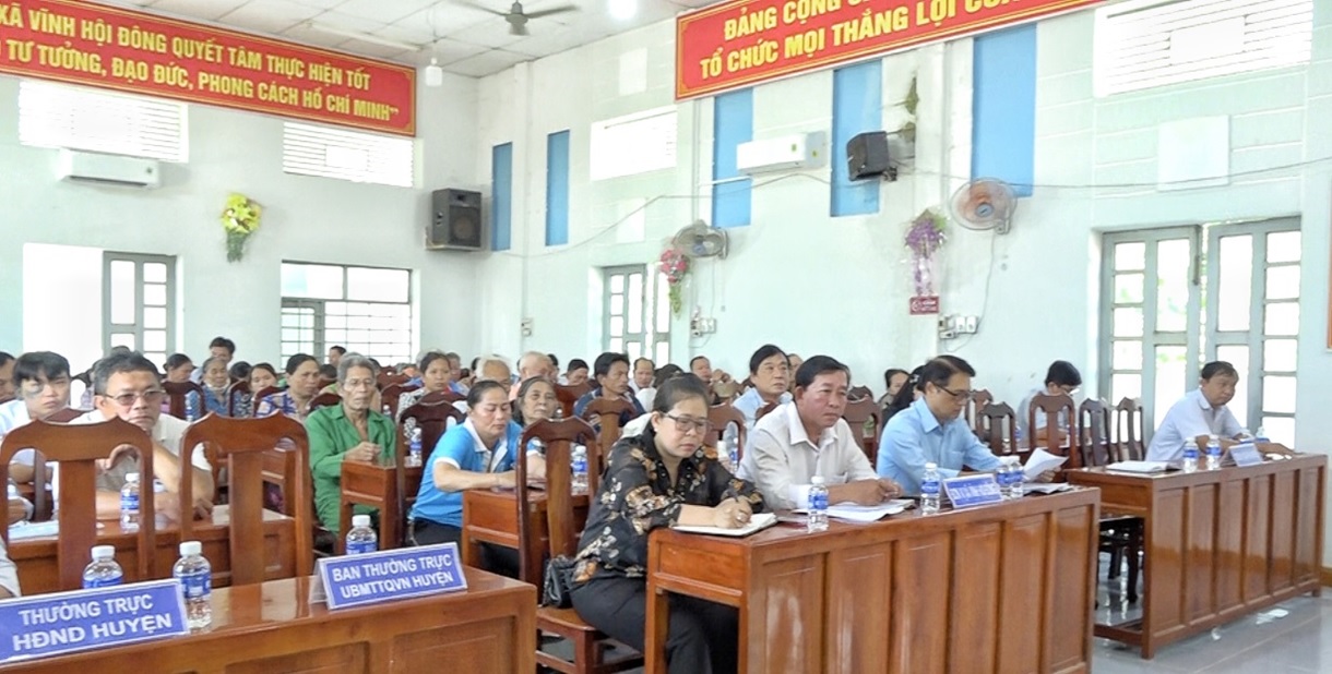 Sau khi nghe báo cáo, cử tri rất phấn khởi với những thành tựu tỉnh, huyện đạt được, đồng thời kiến nghị sớm có quy hoạch xây dựng cầu bắt qua sông, tạo điều kiện người dân ấp Vĩnh Hòa và Vĩnh An, xã Vĩnh Hội Đông lưu thông, trao đổi mua bán, vận chuyển hàng hóa thuận tiện; có kế hoạch cải tạo cống thoát nước khu dân cư khu vực trung tâm chợ xã Vĩnh Hội Đông, đảm bảo vệ sinh môi trường; tạo điều kiện hỗ trợ học phí cho con em gia đình chính sách; sớm đầu tư xây dựng, nâng cấp các đoạn lộ giao thông nông thôn đã xuống cấp trên địa bàn ấp Vĩnh An, xã Vĩnh Hội Đông và một số vấn đề về BHYT hộ gia đình, BHYT học sinh.