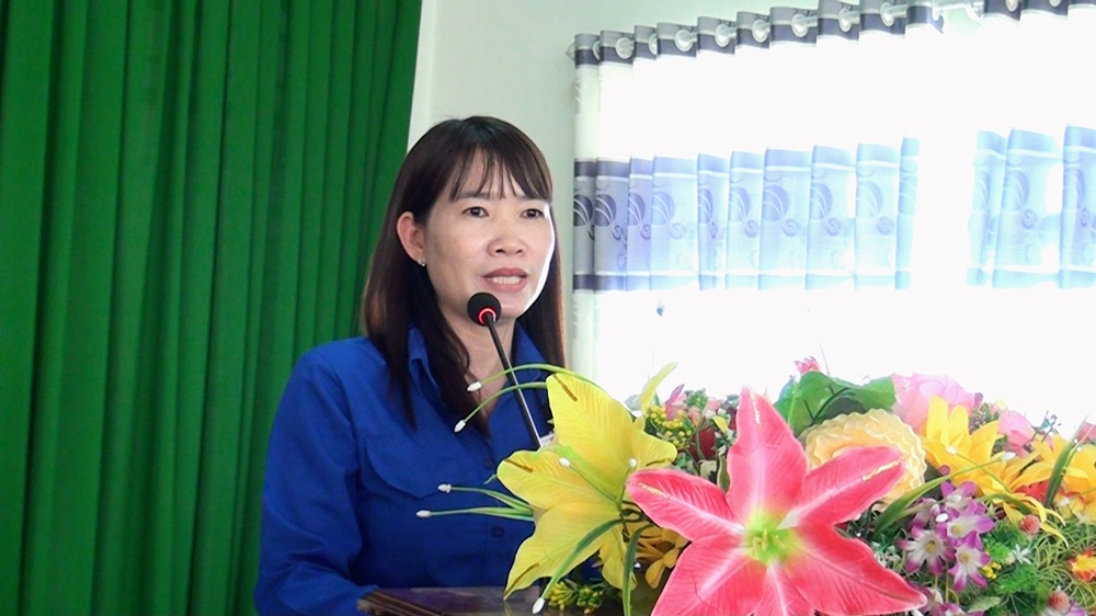 Chị Lâm Thị Ngọc Giàu, Bí thư Đoàn TNCSHCM huyện, Chủ tịch Hội Liên hiệp Thanh niên Việt Nam huyện phát biểu chỉ đạo đại hội