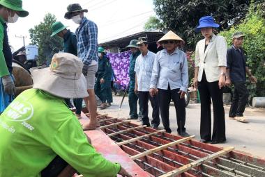Bí thư Huyện ủy thăm và động viên lực lượng tình nguyện xây dựng cầu tuyến dân cư Bắc Cỏ Lau xã Phú Hữu