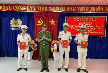 Công an huyện An Phú công bố và trao Quyết định công tác cán bộ của Giám đốc Công an tỉnh và Trưởng Công an huyện