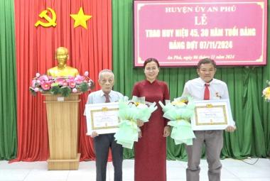 Bí thư Huyện ủy An Phú trao Huy hiệu 45, 30 năm tuổi Đảng đợt 7/11/2024