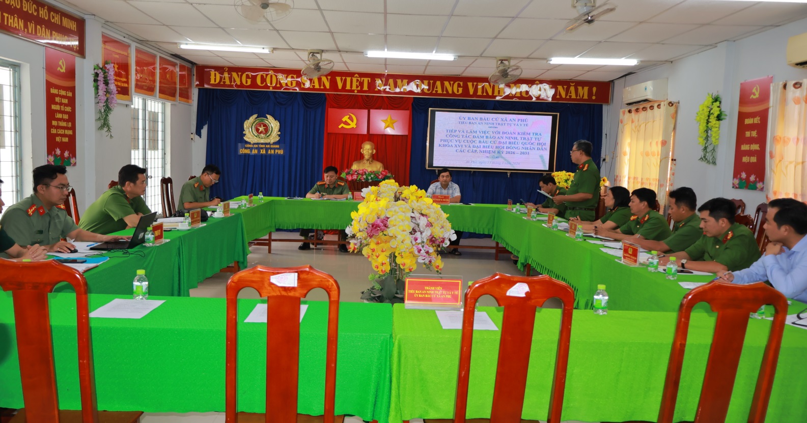 Tại buổi làm việc, Công an xã An Phú đã báo cáo tình hình triển công tác bảo đảm an ninh, trật tự phục vụ bầu cử. Theo đó, toàn xã có 08 đơn vị bầu cử, 30 khu vực bỏ phiếu với 34.125 cử tri (tính đến ngày 11/3/2026). Công tác rà soát, cập nhật và in danh sách cử tri được thực hiện đúng quy định, bảo đảm kịp thời phục vụ công tác bầu cử.