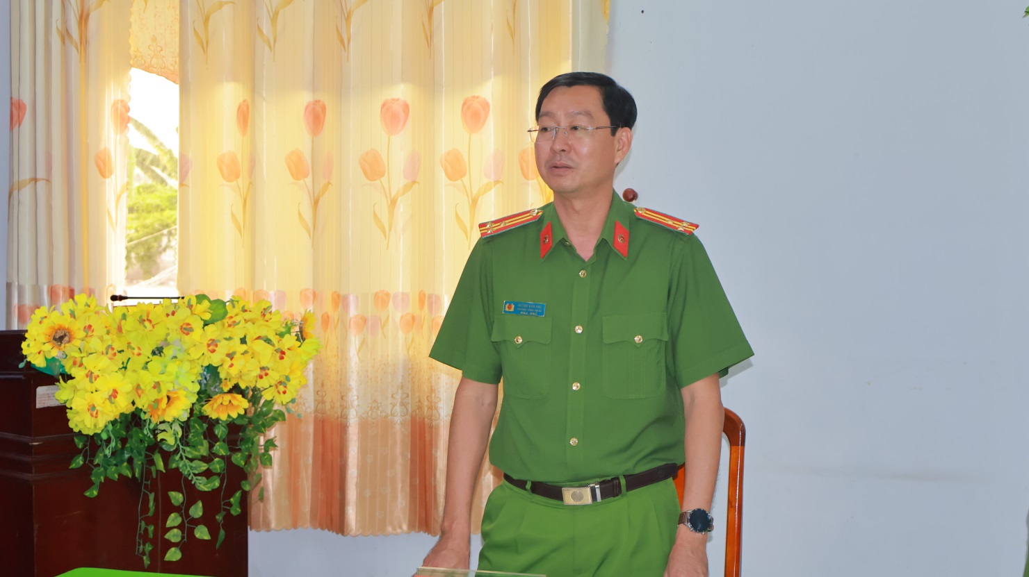 Thượng tá Phan Quốc Dũng, Phó trưởng Phòng PX03 Công an tỉnh An Giang (bìa trái) phát biểu kết luận hội nghị
