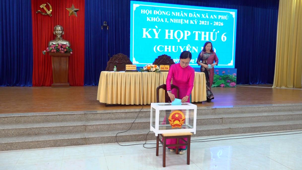 Đại biểu HĐND xã bỏ phiếu bầu bổ sung Ủy viên UBND xã An Phú, nhiệm kỳ 2021 - 2026