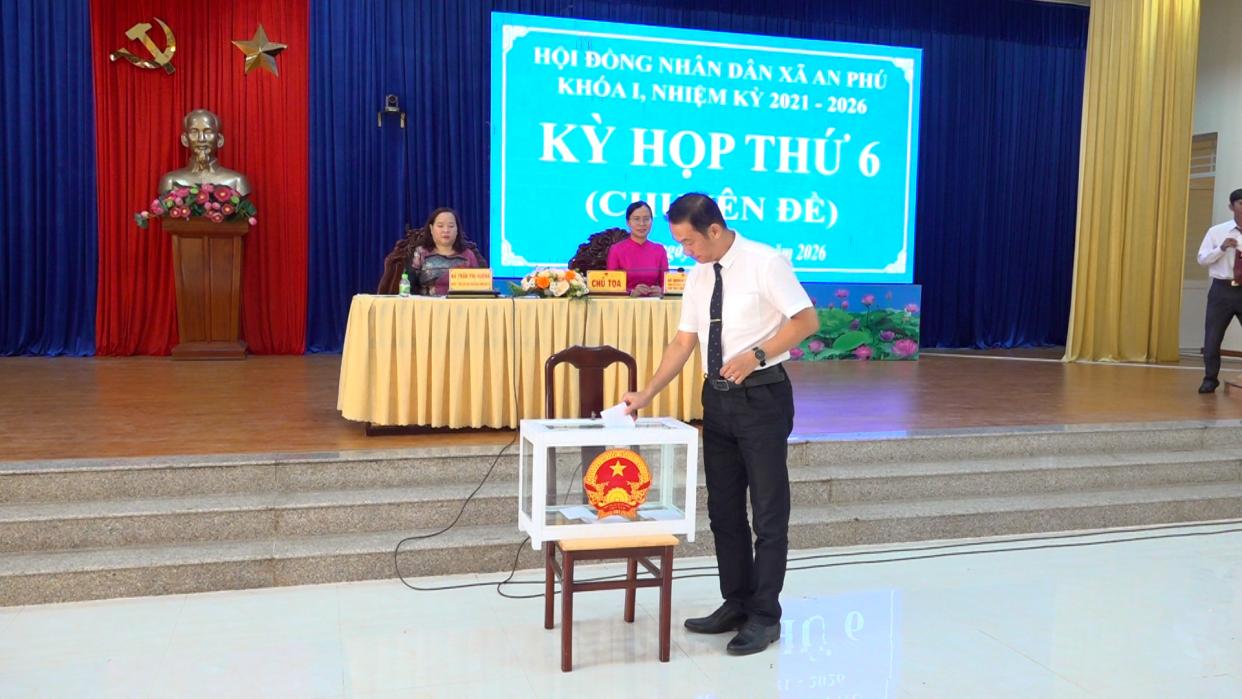 Kỳ họp đã thực hiện quy trình miễn nhiệm Ủy viên UBND xã An Phú, nhiệm kỳ 2021 - 2026 đối với ông Nguyễn Phước Luân, nguyên Chỉ huy trưởng Ban Chỉ huy Quân sự xã; tiến hành bầu bổ sung Ủy viên UBND xã An Phú, nhiệm kỳ 2021 - 2026 đối với ông Nguyễn Văn Điểm, Chỉ huy trưởng Ban Chỉ huy Quân sự xã; đồng thời, biểu quyết thông qua các nghị quyết xác nhận kết quả bầu miễn nhiệm và bầu bổ sung chức danh Ủy viên UBND xã An Phú, nhiệm kỳ 2021 - 2026.