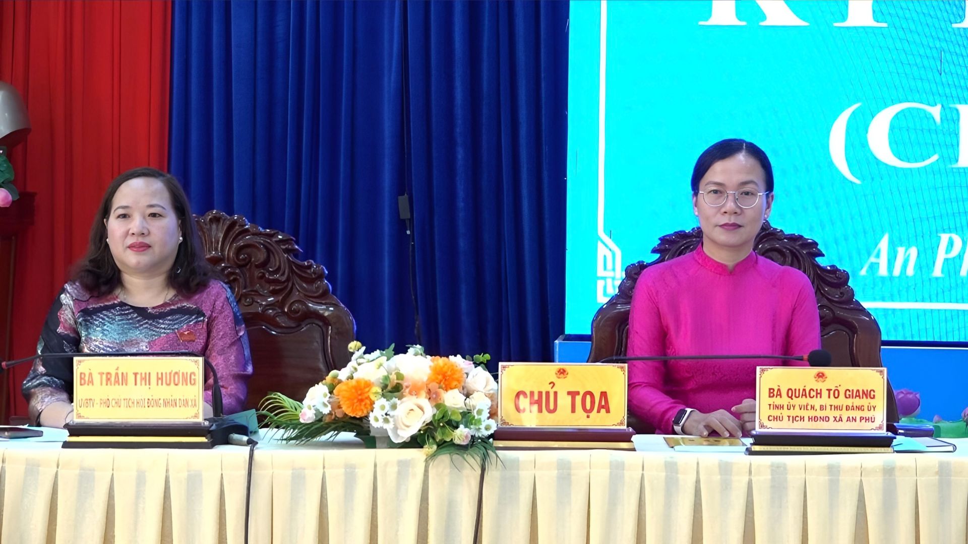 Chiều 10/3, HĐND xã An Phú khóa I, nhiệm kỳ 2021 - 2026 tổ chức Kỳ họp thứ 6 (kỳ họp chuyên đề); đồng chí Quách Tố Giang, Tỉnh ủy viên, Bí thư Đảng ủy, Chủ tịch HĐND xã và đồng chí Trần Thị Hương, Ủy viên Ban Thường vụ Đảng ủy, Phó Chủ tịch HĐND xã cùng chủ trì kỳ họp.