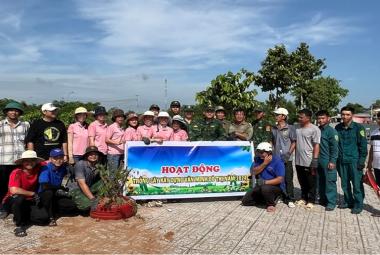 Thị trấn Long Bình ra quân vệ sinh môi trường kết hợp trồng tuyến đường hoa