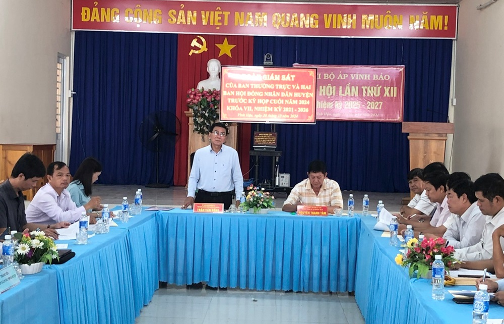 Kết luận buổi làm việc, ông Trần Văn Rồng, Ủy viên Ban Thường vụ Huyện ủy, Phó Chủ tịch HĐND huyện, Trưởng đoàn giám sát đã ghi nhận và đánh giá cao những kết quả mà HĐND xã Vĩnh Hậu lãnh đạo thực hiện Nghị quyết phát triển kinh tế - xã hội trong 9 tháng đầu năm 2024. Qua đó, Phó Chủ tịch HĐND huyện mong muốn địa phương nghiêm túc tiếp thu những ý kiến đóng góp của các thành viên trong đoàn, đồng thời tập trung rà soát và lãnh đạo triển khai thực hiện hiệu quả các tiêu chí chưa đạt, đặc biệt chú trọng công tác phát triển sản xuất nông nghiệp gắn với kinh tế hợp tác, tiêu thụ sản phẩm; tăng cường tuyên truyền phòng, chống dịch bệnh sau lũ, công tác phòng cháy chữa cháy, thiên tai, sạt lở; tăng cường phối hợp vận động học sinh đảm bảo sĩ số, quan tâm hỗ trợ không để học sinh bỏ học do nghèo khó; vận động Nhân dân tích cực tham gia BHYT, BHXH và phòng, chống các loại tội phạm, đảm bảo an ninh chính trị, trật tự an toàn xã hội trên địa bàn./.
