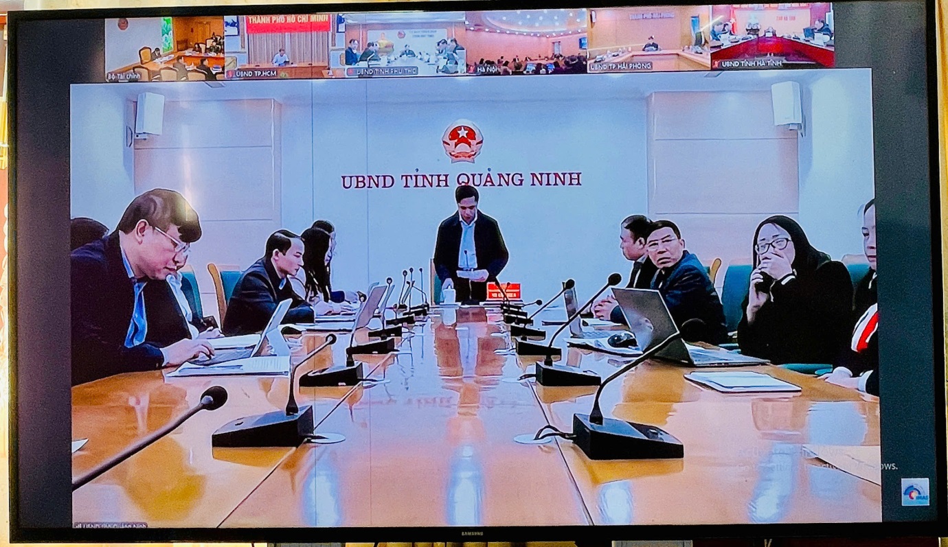 Hình ảnh trực tuyến tại điểm cầu tỉnh Quảng Ninh đang báo cáo Kế hoạch thực hiện Tổng điều tra kinh tế