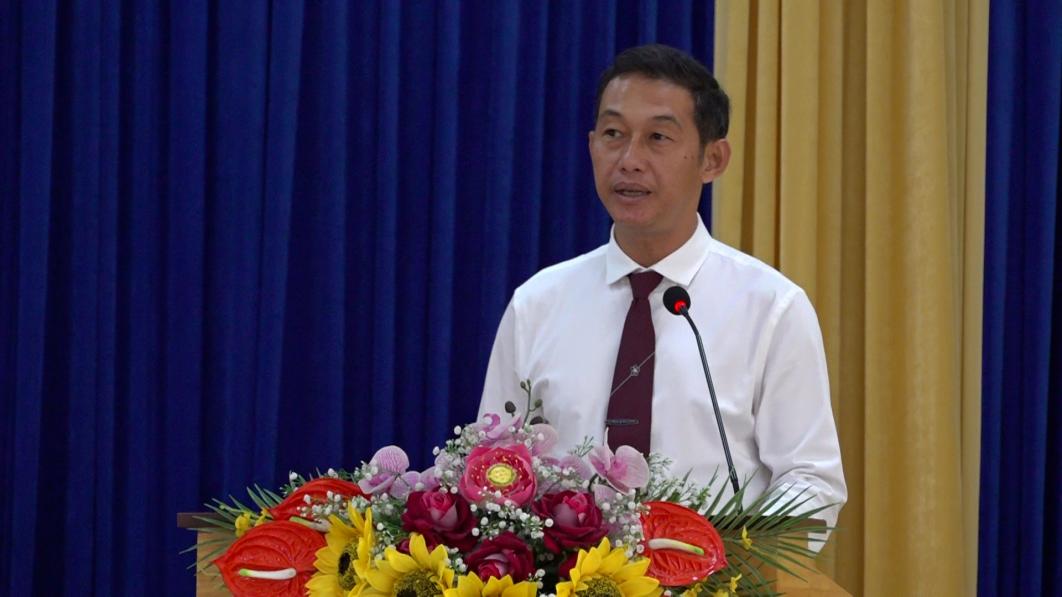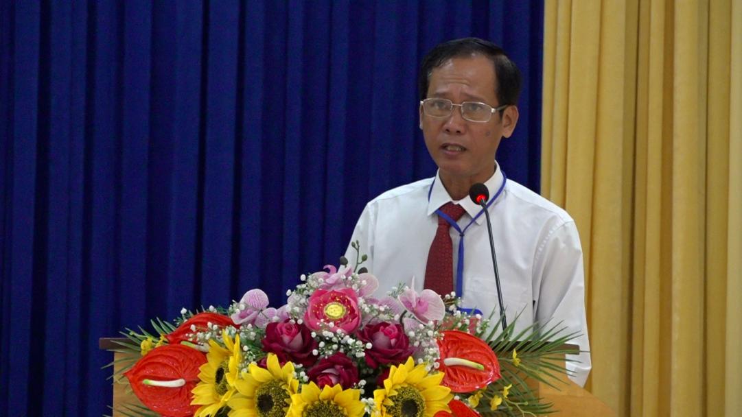 Ông Lê Thanh Phương, Phó Bí thư Thường trực Đảng ủy, Giám đốc Trung tâm Chính trị xã An Phú phát biểu tại đại hội