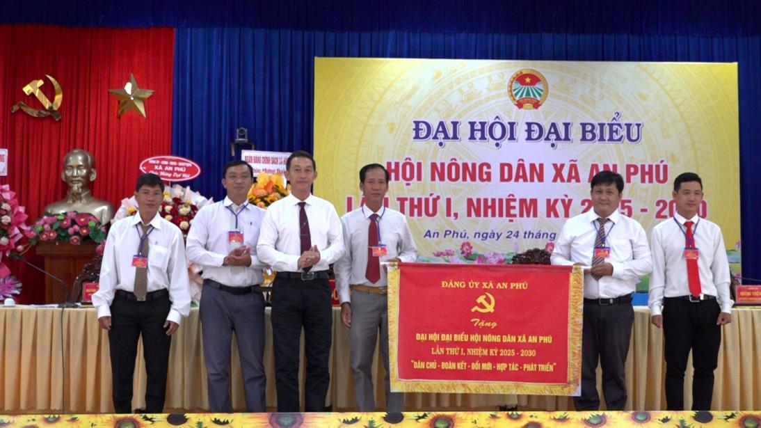 Lãnh đạo Đảng ủy xã An Phú tặng bức trướng chúc mừng đại hội