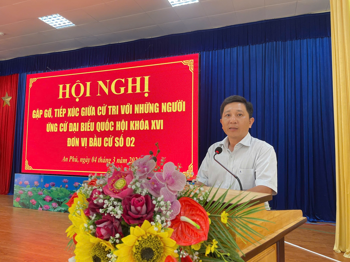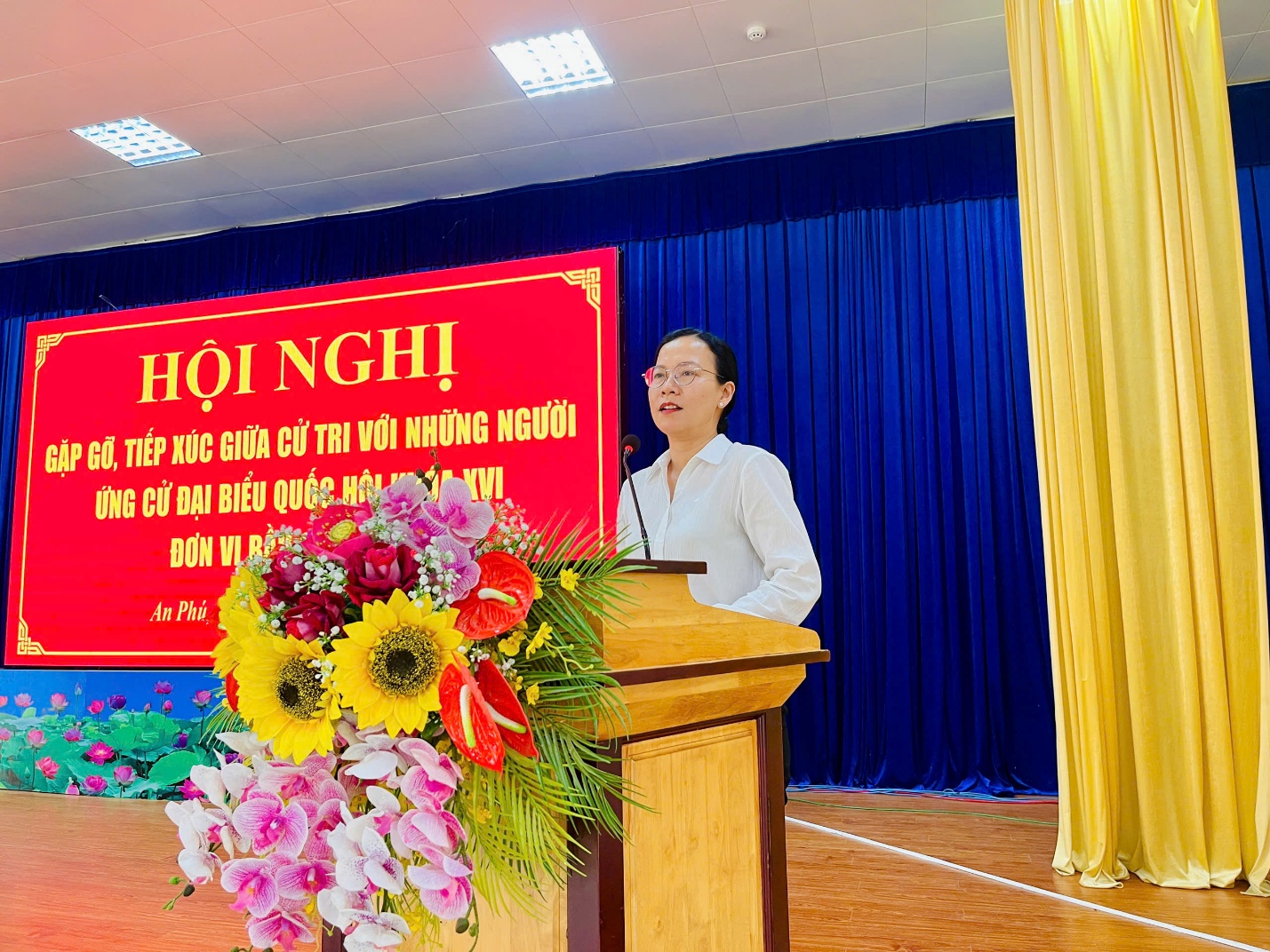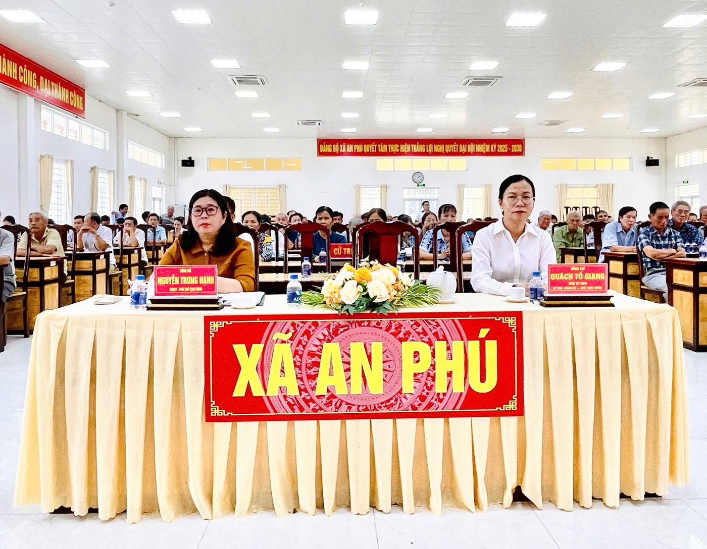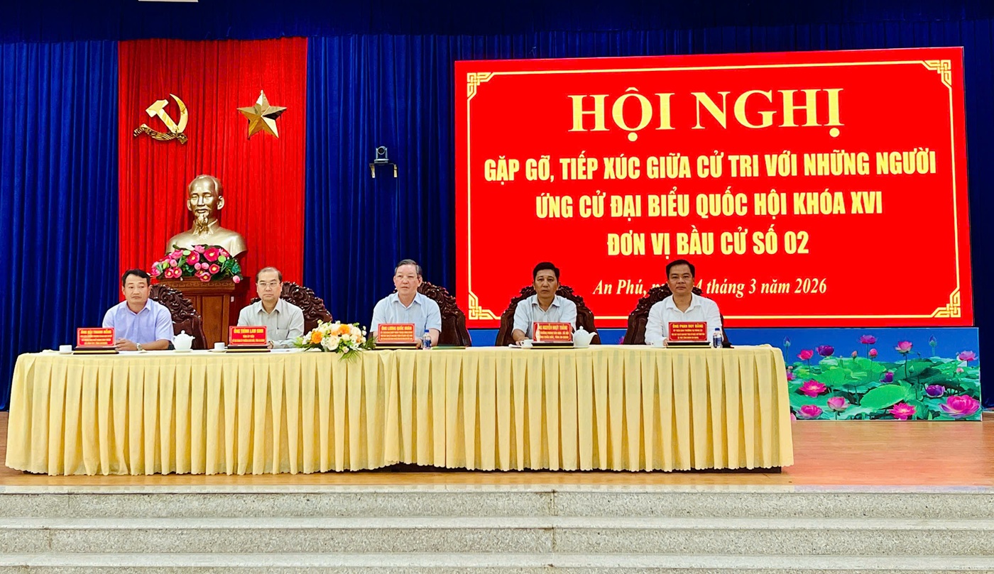 Chiều 4/3/2026, tại hội trường Đảng ủy xã An Phú đã diễn ra Hội nghị gặp gỡ, tiếp xúc giữa cử tri với những người ứng cử đại biểu Quốc hội khóa XVI, nhiệm kỳ 2026–2031, đơn vị bầu cử số 02;bà Quách Tố Giang, Tỉnh ủy viên, Bí thư Đảng ủy, Chủ tịch HĐND, Trưởng Ban chỉ đạo bầu cử xã An Phú, cùng với hơn 70 cử tri đến dự.