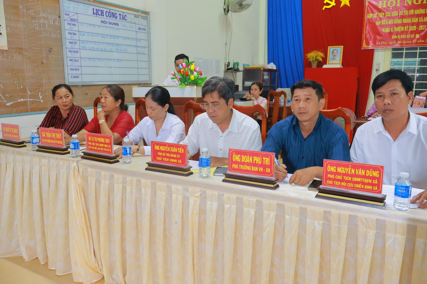 Tại buổi tiếp xúc cử tri, 100% cử tri đều thống nhất với người ứng cử đại biểu HDND xã An Phú tại tổ bầu cử số 5. Ngoài ra, cử tri đã thẳng thắn trao đổi, phản ánh nhiều vấn đề liên quan đến đời sống dân sinh, tình hình An ninh quốc phòng, cơ sở hạ tầng giao thông nông thôn, an ninh trật tự và các chính sách an sinh xã hội. Các kiến nghị của cử tri đều được ứng cử viên đại biểu HĐND xã ghi nhận đầy đủ.