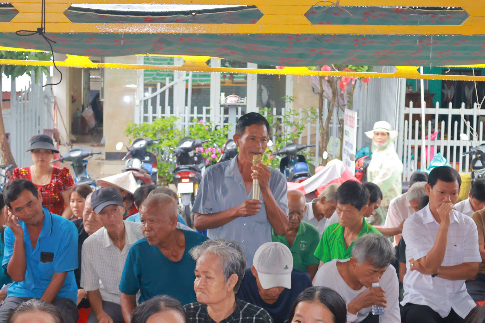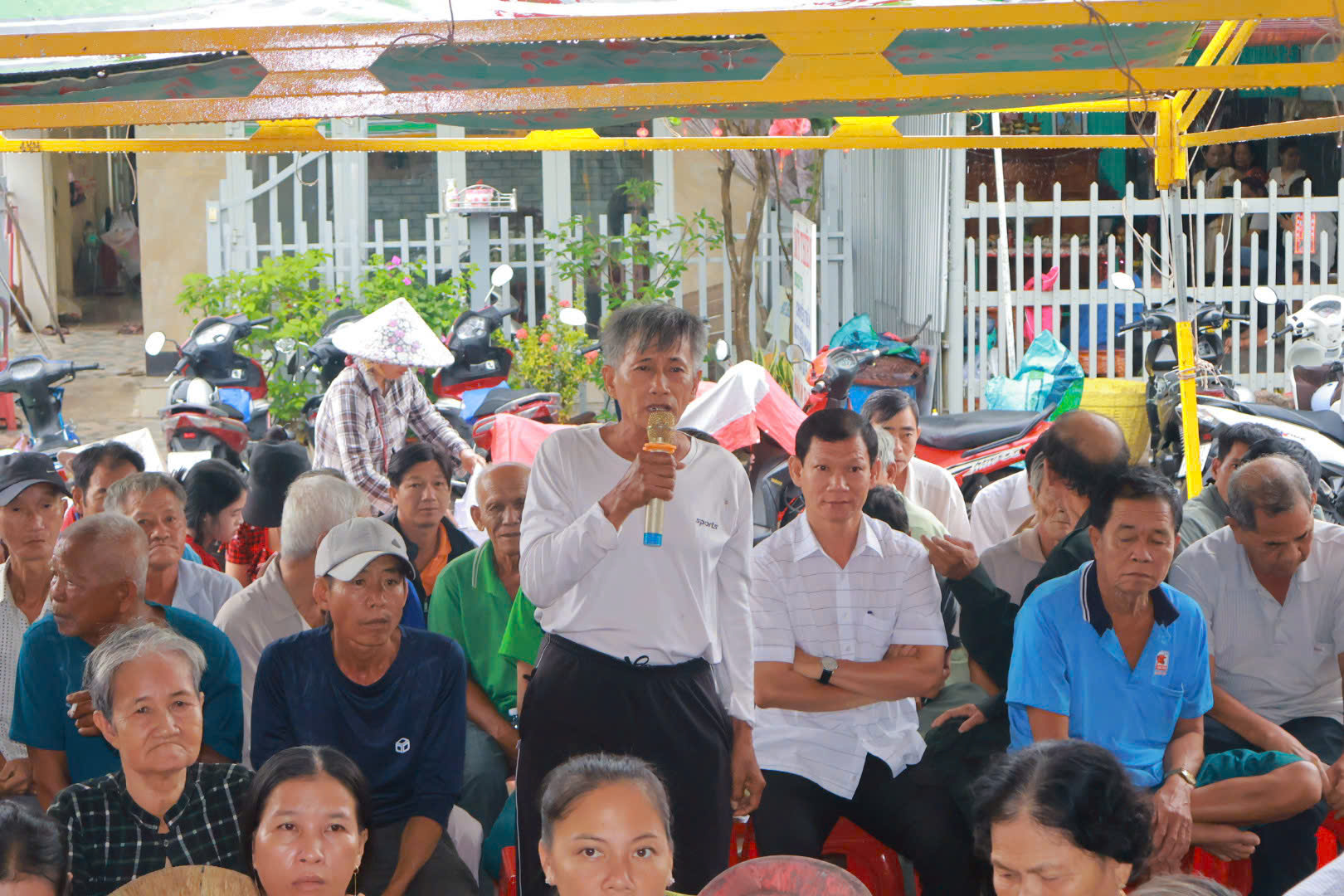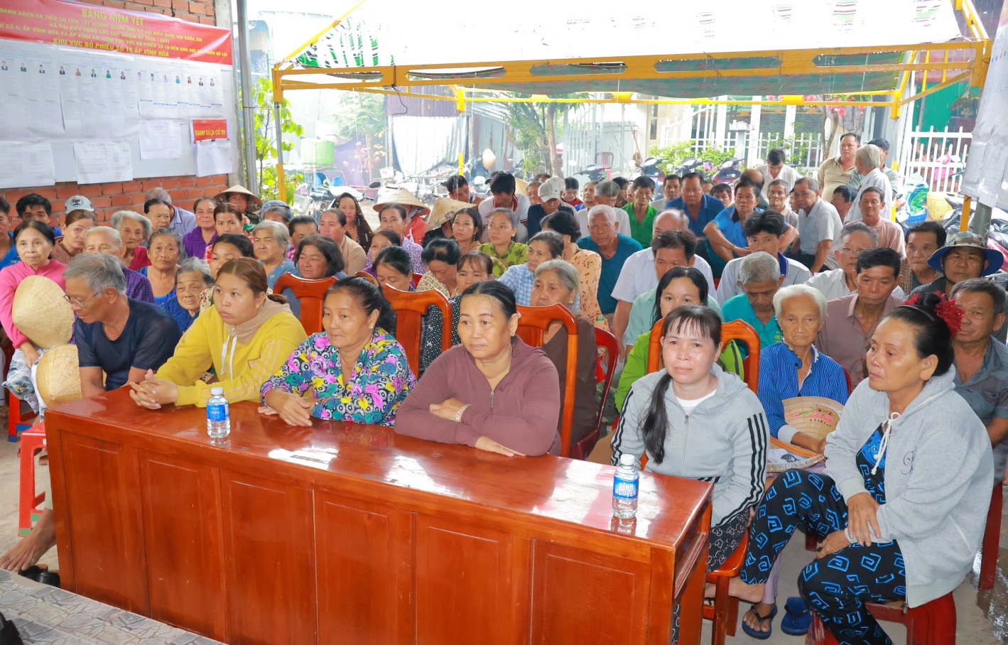 Quang cảnh cử tri ấp Vĩnh Hòa dự hội nghị tiếp xúc cử tri