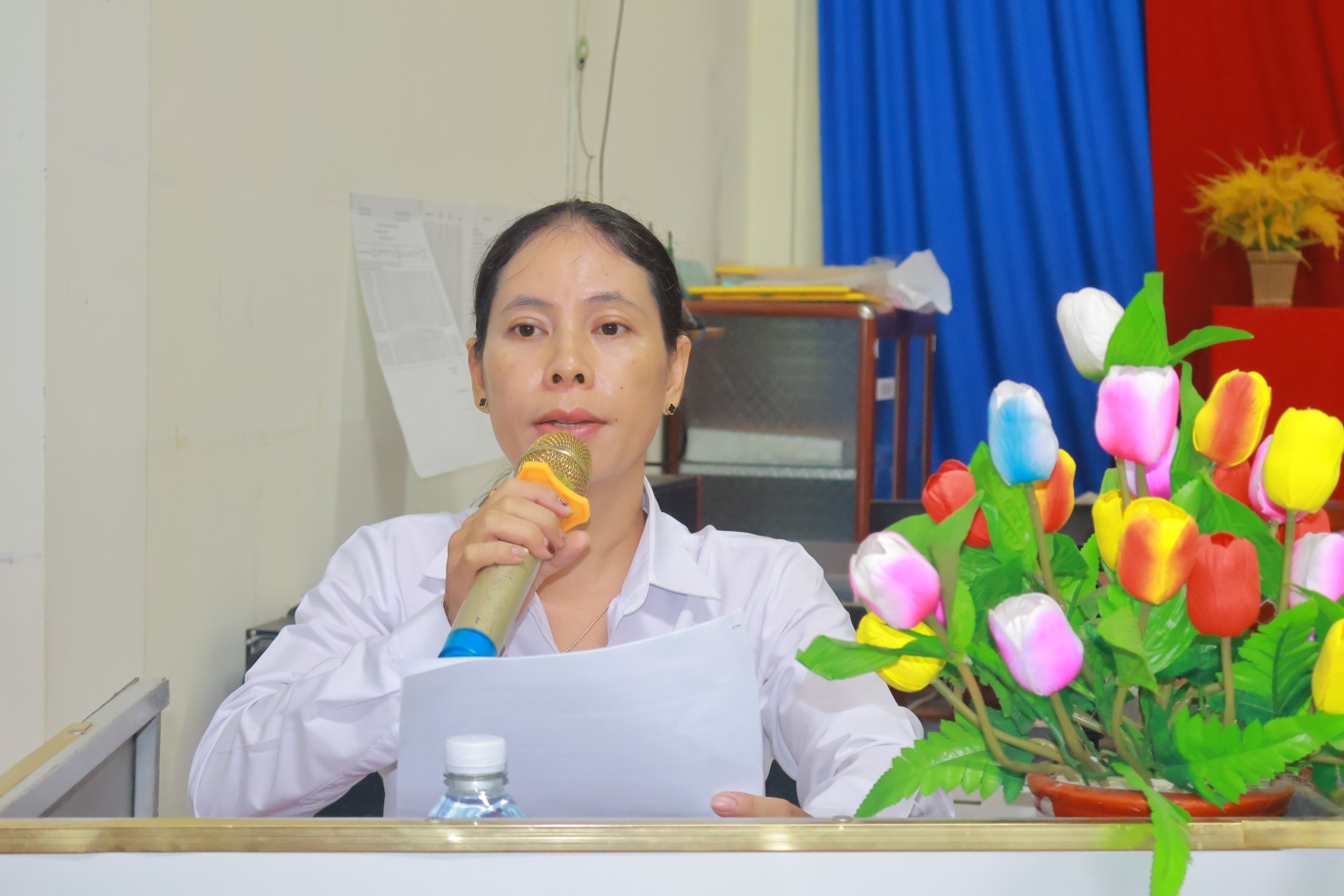 Bà Tạ Phương Thúy, Phó Chủ tịch UBMTTQVN, Chủ tịch HLHPN xã An Phú, ứng cử viên đại biểu HĐND xã thông qua chương trình hành động