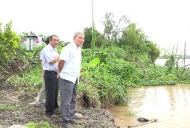 Phó Bí thư Thường trực Huyện ủy An Phú khảo sát tình hình sạt lở tại ấp Phú Thành, xã Phú Hữu