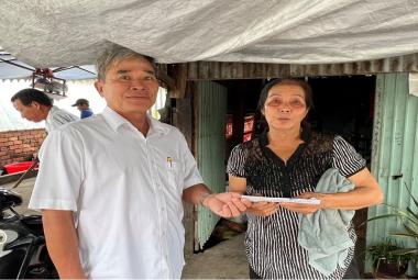 Huyện ủy HĐND, UBND, UBMTTQVN huyện đến thăm gia đình có nhà bị tốc mái
