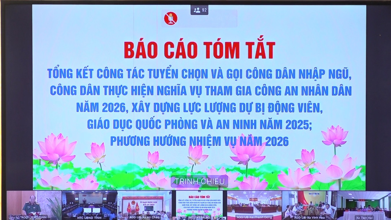 Sáng 21/4, UBND tỉnh An Giang tổ chức Hội nghị tổng kết công tác tuyển chọn và gọi công dân nhập ngũ, công dân thực hiện nghĩa vụ tham gia Công an nhân dân năm 2026; xây dựng lực lượng dự bị động viên, giáo dục quốc phòng và an ninh năm 2025; triển khai phương hướng, nhiệm vụ năm 2026 bằng hình thức trực tiếp kết hợp trực tuyến; tại điểm cầu xã An Phú, ông Nguyễn Xuân Tiến, Phó Bí thư Đảng ủy, Chủ tịch UBND xã chủ trì hội nghị.
