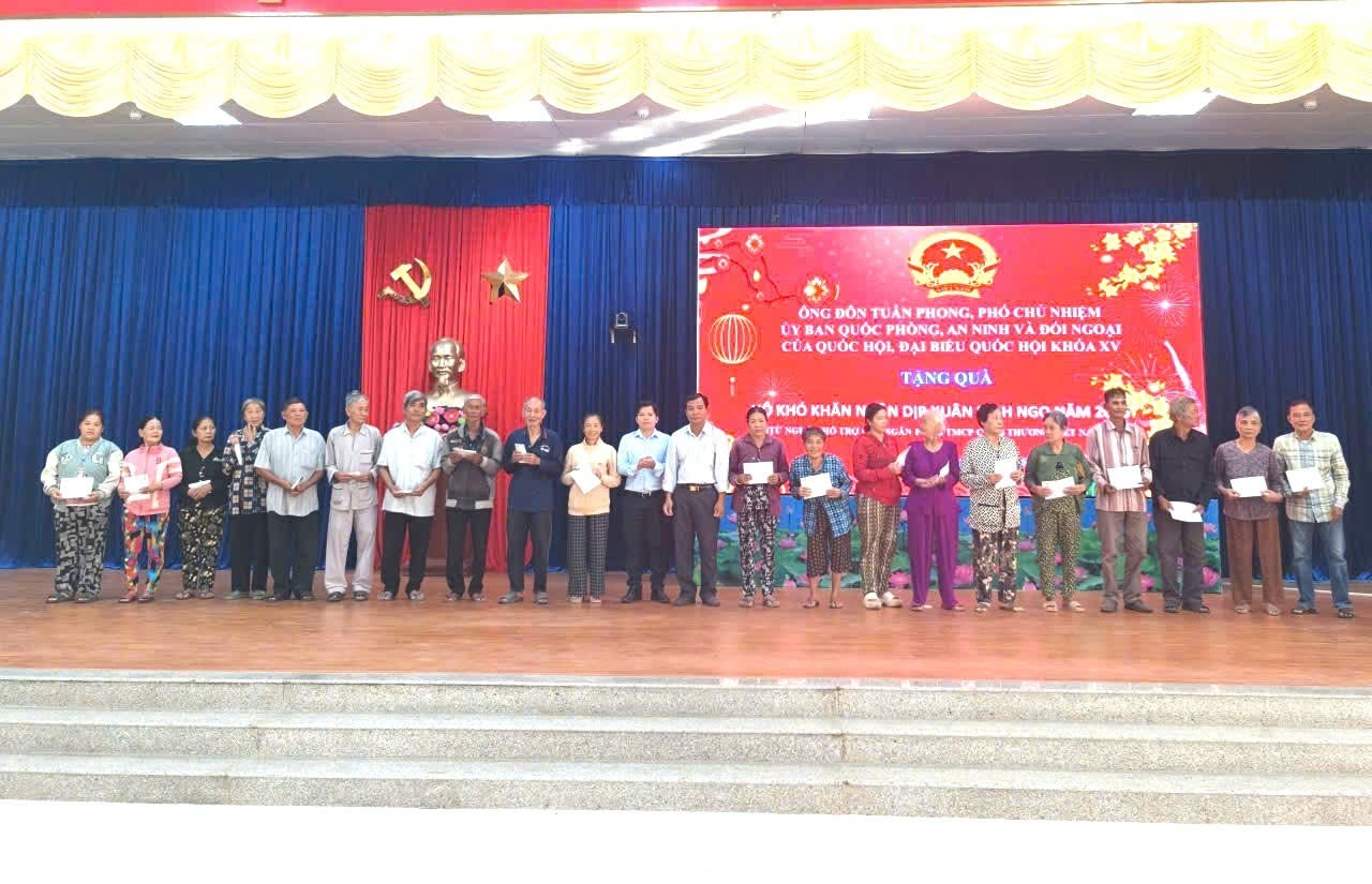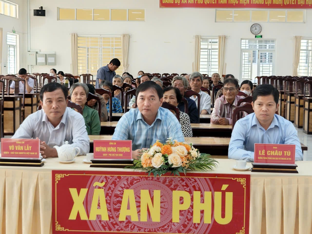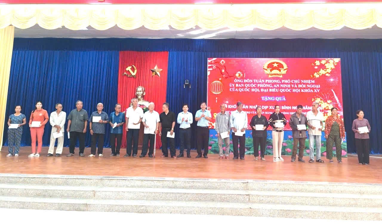Tại đây, ông Đôn Tuấn Phong, Phó Chủ nhiệm Ủy ban Quốc phòng, An ninh và Đối ngoại của Quốc hội, đại biểu Quốc hội khóa XV đã vận động và trao tặng 50 phần quà cho hộ gia đình có hoàn cảnh khó khăn trên địa bàn xã An Phú. Mỗi phần quà là tiền mặt, trị giá 1 triệu đồng, góp phần chia sẻ khó khăn, giúp bà con đón tết thêm ấm áp.