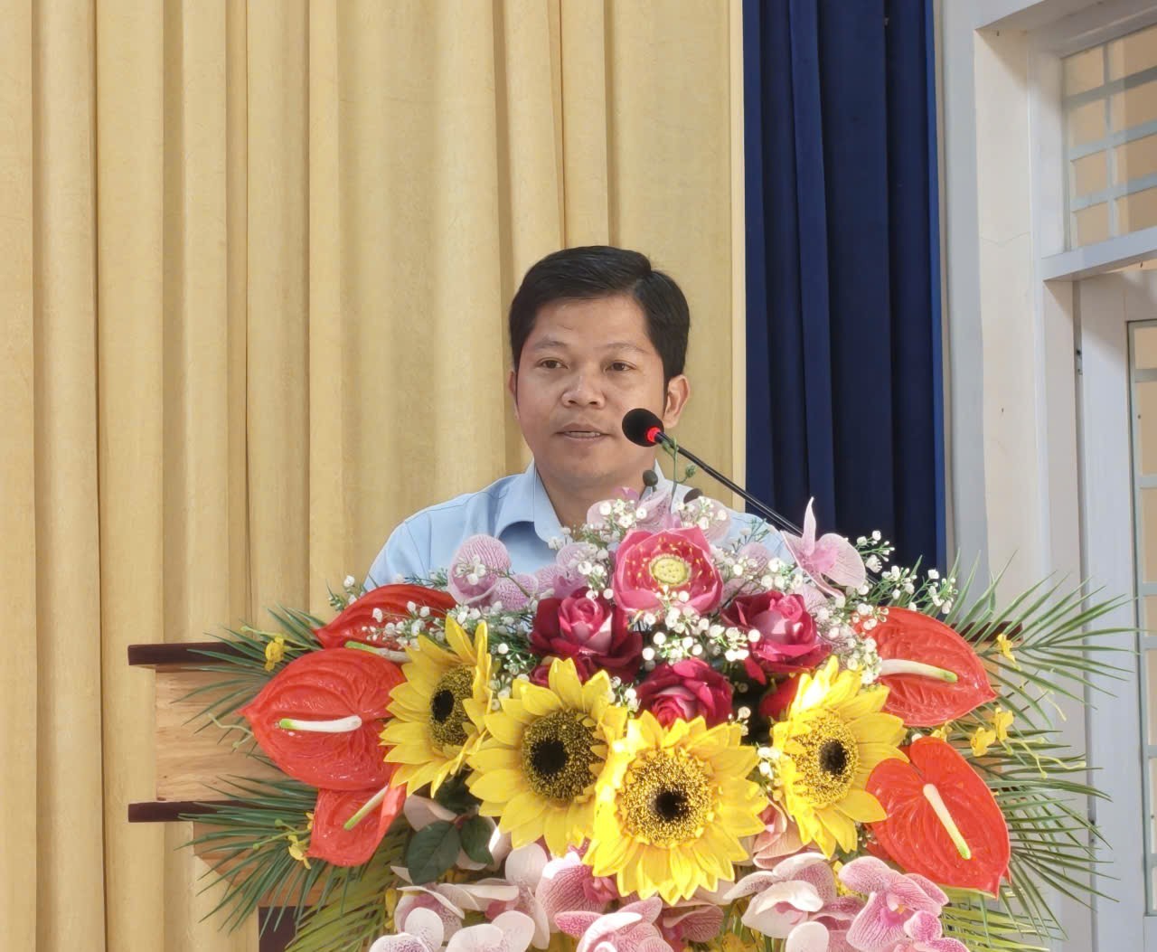 Ông Lê Châu Tú, Trưởng Phòng Giao dịch ViettinBank An Phú phát biểu tại buổi trao quà