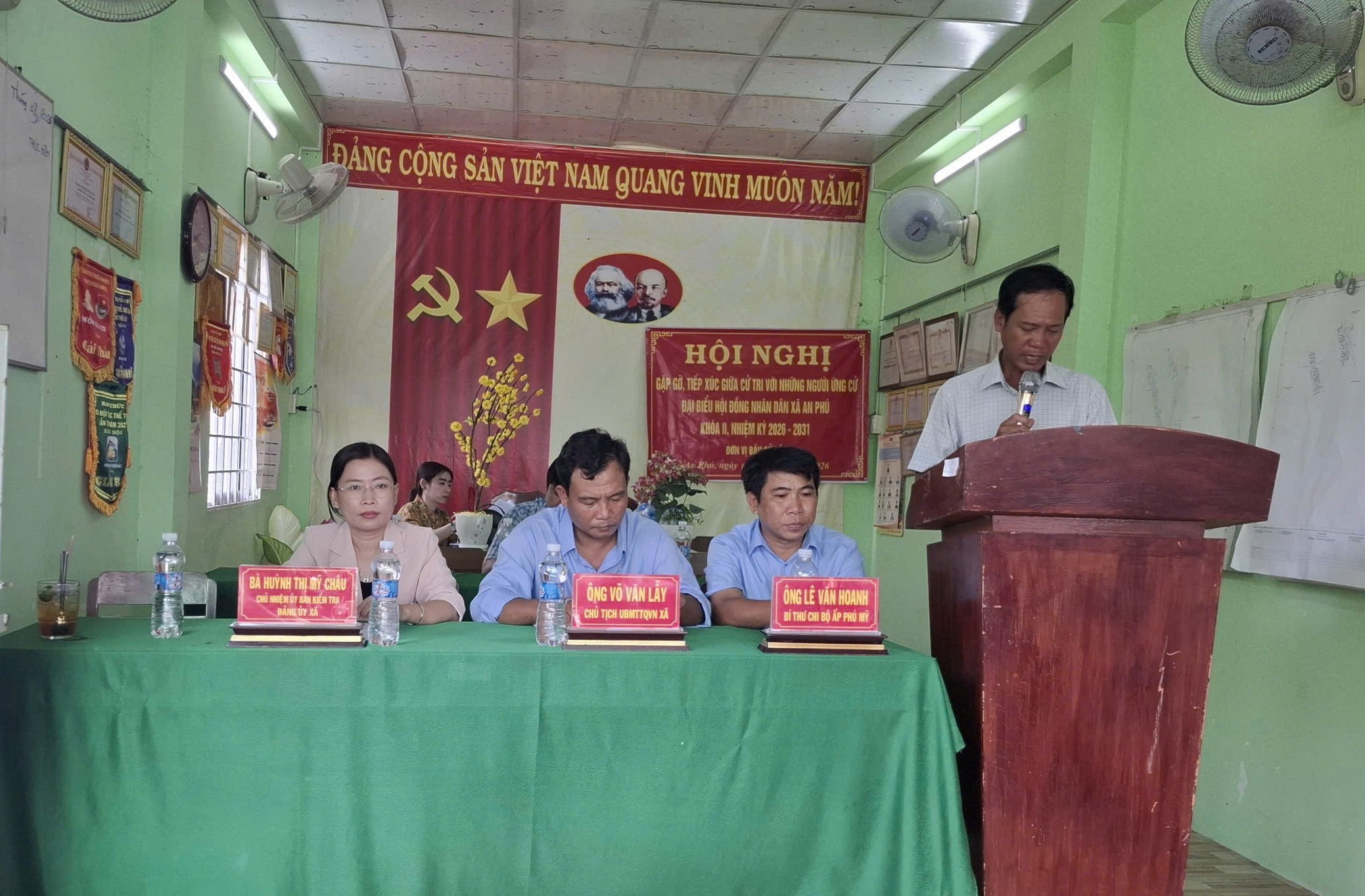 Chiều 7/3, người ứng cử đại biểu HĐND xã An Phú, đơn vị bầu cử số 8 tiếp tục có buổi gặp gỡ, tiếp xúc cử tri ấp Phú Mỹ, gồm các ứng viên: ông Võ Văn Lẫy, Chủ tịch Ủy ban MTTQVN xã An Phú; bà Huỳnh Thị Mỹ Châu, Chủ nhiệm Ủy ban kiểm tra Đảng ủy xã An Phú.