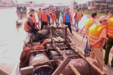 An Phú ra quân kiểm tra, xử lý vi phạm khai thác, đánh bắt thủy sản trái phép trên sông