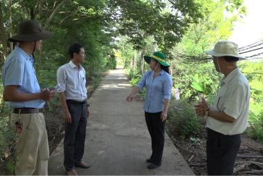 Phó Chủ tịch UBND huyện An Phú, bà Nguyễn Thị Phướng kiểm tra công trình phục vụ sản xuất nông nghiệp
