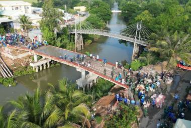 Phú Hữu huy động lực lượng đổ bê tông mặt cầu tuyến dân cư Bắc Cỏ Lau