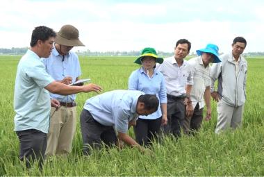 Phó Chủ tịch UBND huyện An Phú kiểm tra tình hình rầy phấn trắng hại lúa Hè Thu