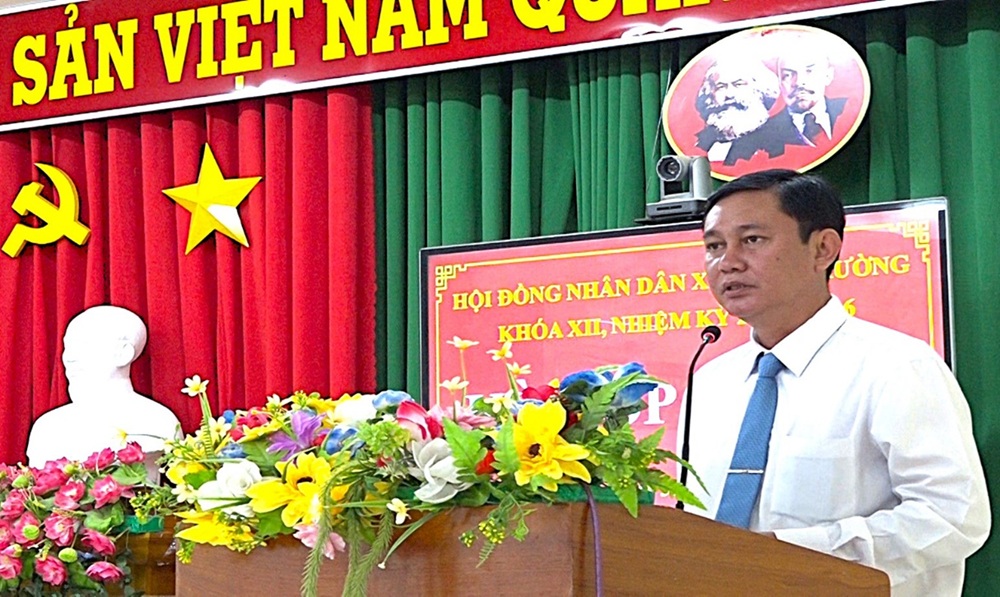 Ông Nguyễn Thanh Việt, Chủ tịch Ủy ban nhân dân xã phát biểu ý kiến tại kỳ họp