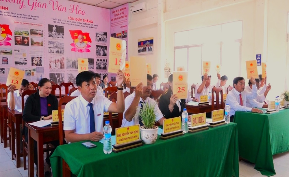 Tại kỳ họp, 100% đại biểu Hội đồng nhân dân tham dự, thống nhất biểu quyết thông qua dự thảo Nghị quyết về việc xác nhận kết quả Đồ án Quy hoạch tổng mặt bằng tỷ lệ 1/500 Khu sắp xếp, ổn định dân cư huyện An Phú.