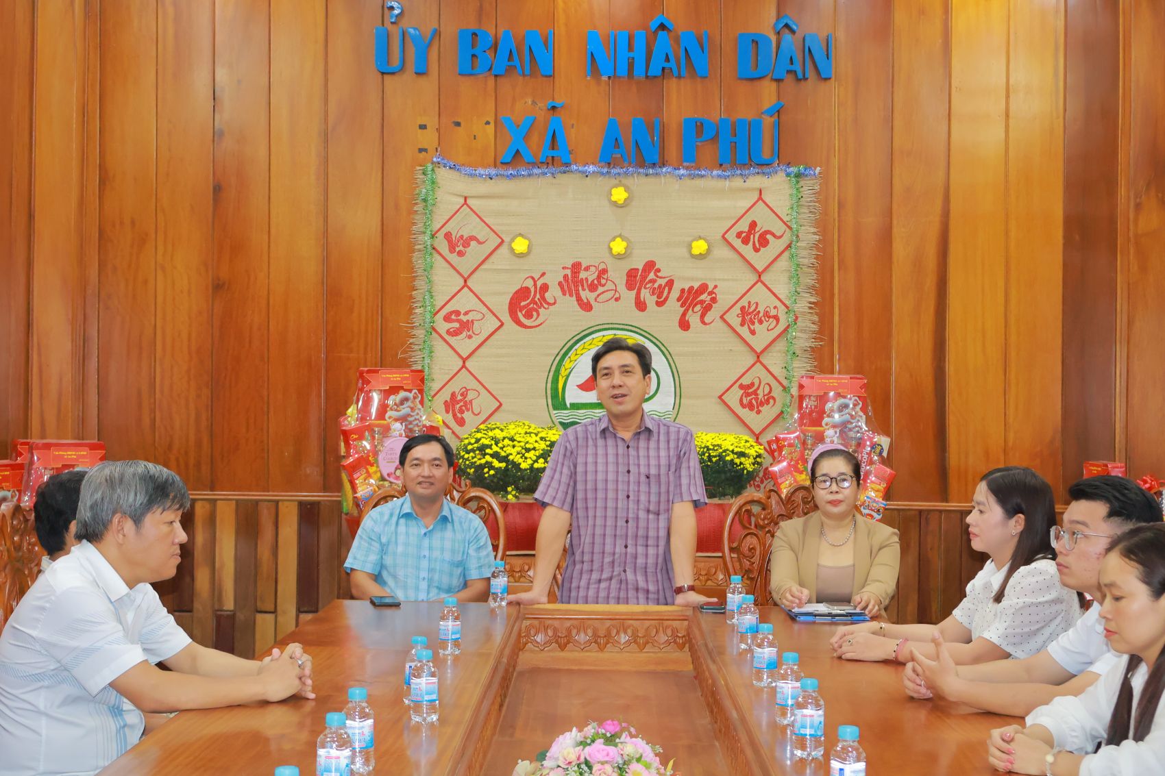 Tại buổi chúc tết, tặng quà, ông Nguyễn Xuân Tiến, Phó Bí thư Đảng ủy, Chủ tịch UBND xã An Phú ghi nhận và biểu dương tinh thần, trách nhiệm, sự chủ động, tận tụy của tập thể Văn phòng HĐND và UBND xã trong công tác tham mưu, tổng hợp, phục vụ hoạt động chỉ đạo, điều hành của lãnh đạo UBND xã trong suốt thời gian qua.