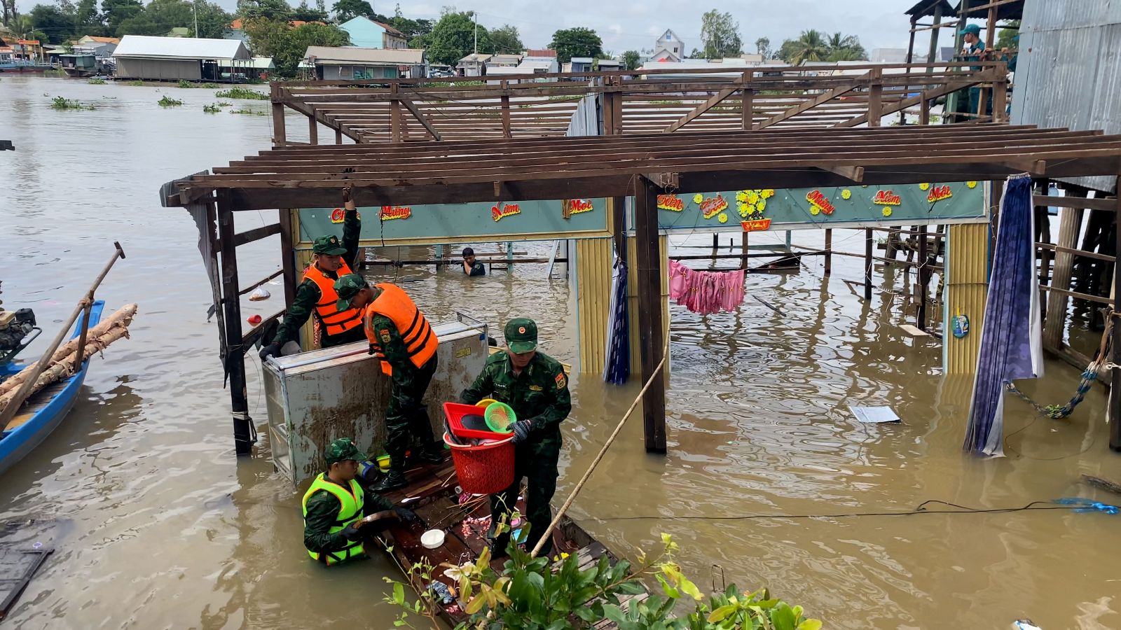 Lực lượng chức năng hỗ trợ người dân khắc phục hậu quả